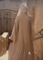 Sublime abaya en Soie de Médine plissée avec manches volant. Une tenue parfaite pour vos soirées habillées et chic.